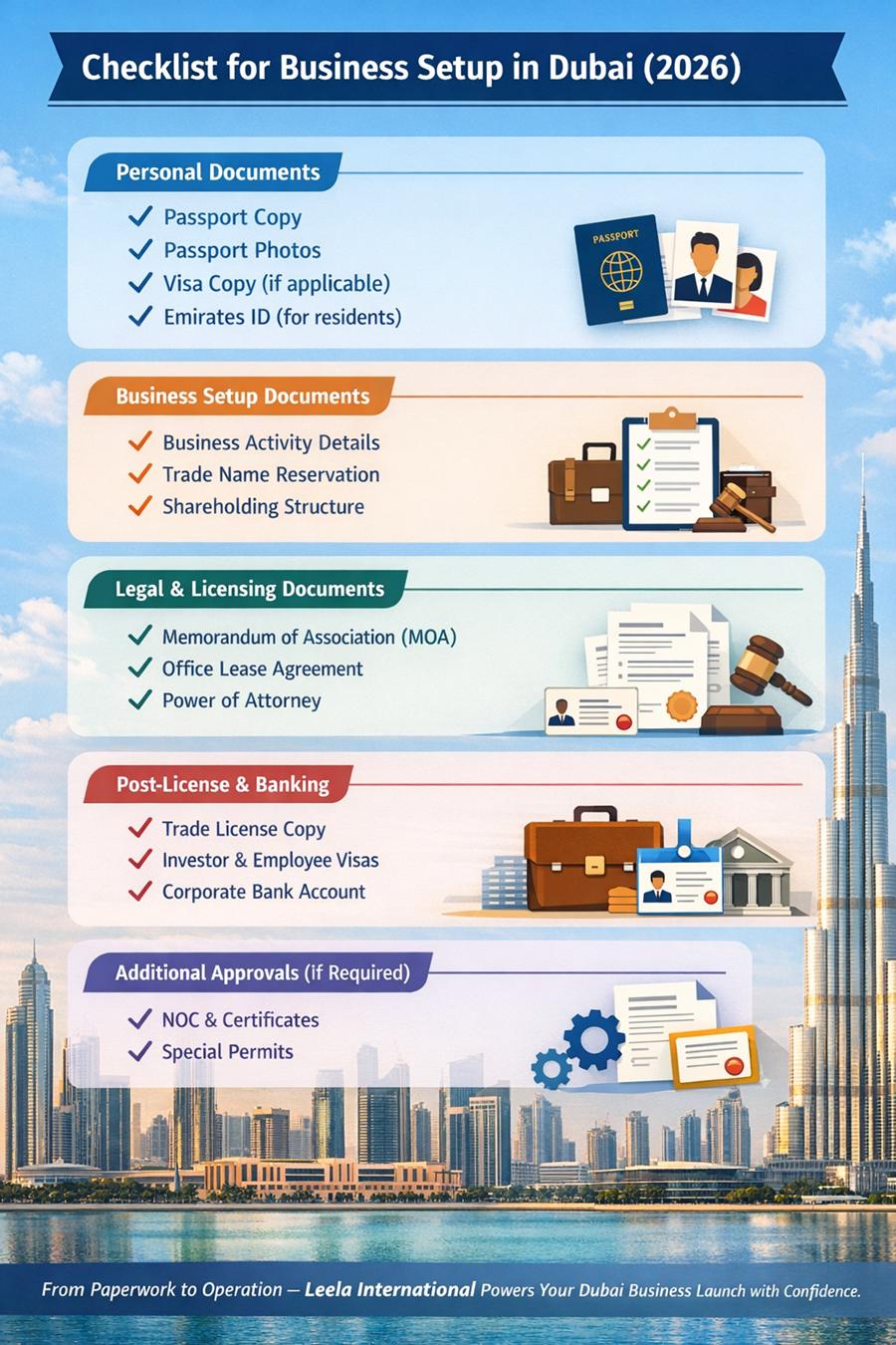 Despite this streamlined approach, accuracy is critical. Errors in the business registration process in the UAE can lead to delays. Leela International provides complete, end-to-end assistance tailored specifically for first-time entrepreneurs